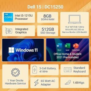 Dell 15 Laptop, 14th Gen Intel Core 3 100U Processor, 8GB DDR4, 512 SSD, Intel UHD Graphics, 15.6